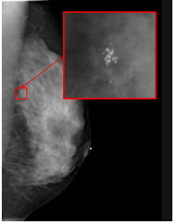 マンモグラフィによる腫瘤(左)と石灰化(右)